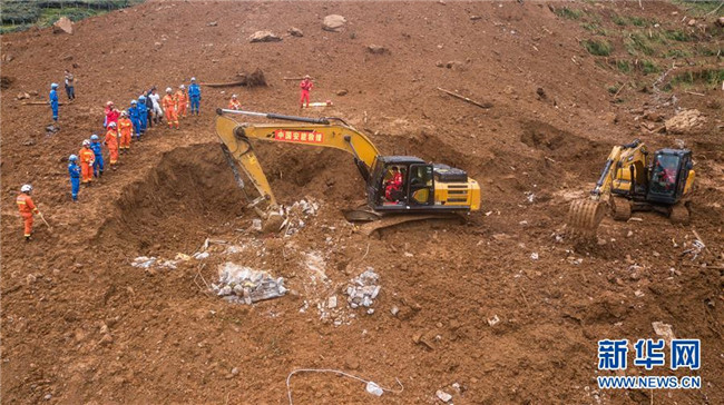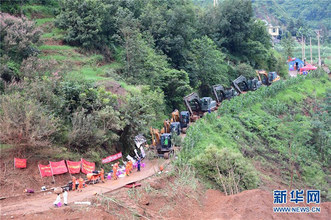 7月24日,救援人員在山體滑坡現(xiàn)場(chǎng)開展救援。 新華社記者 陶亮 攝