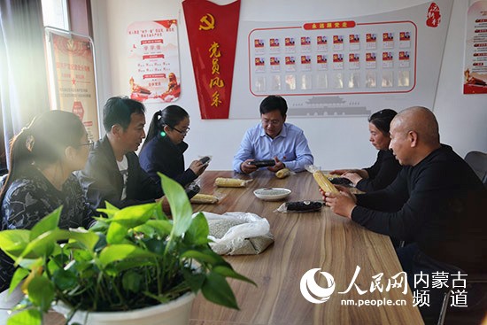 張驊帶領(lǐng)駐村工作隊(duì)和村兩委研究黑糯玉米銷售策略。