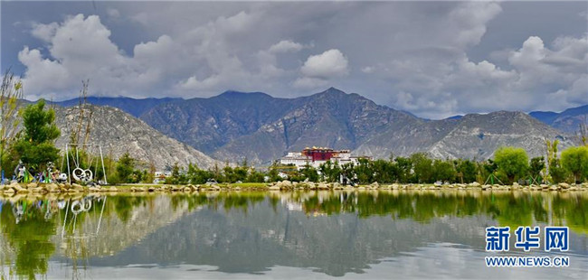 在南山公園湖畔拍攝的布達(dá)拉宮風(fēng)光(7月30日攝)。新華社記者 張汝鋒 攝