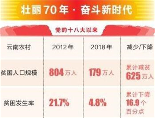 國家統(tǒng)計局云南調(diào)查總隊8月2日發(fā)布數(shù)據(jù)顯示:新中國成立70年來,云南扶貧歷程實現(xiàn)了從救濟(jì)型、區(qū)域開發(fā)型到精準(zhǔn)扶貧型的轉(zhuǎn)變,扶貧實現(xiàn)歷史性跨越。特別是改革開放以來,3次確定調(diào)整國家農(nóng)村貧困標(biāo)準(zhǔn),貧困人口規(guī)模大幅度減少,貧困發(fā)生率持續(xù)下降,減貧成果顯著。