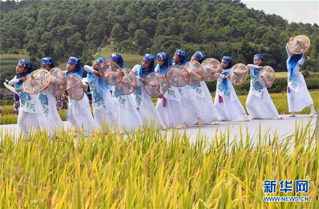 金秋時(shí)節(jié),云南省尋甸回族彝族自治縣在七星鎮(zhèn)魯古村舉行慶祝豐收活動(dòng)。 新華社記者 楊宗友 攝