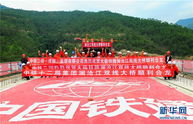 當(dāng)日,由中鐵十二局集團(tuán)公司承建的中緬國際通道大(理)臨(滄)鐵路瀾滄江雙線大橋順利合龍。該橋位于云南省大理州南澗縣,是目前世界上在建的高地震烈度區(qū)最大跨度鐵路雙線連續(xù)剛構(gòu)橋,全長431.6米。