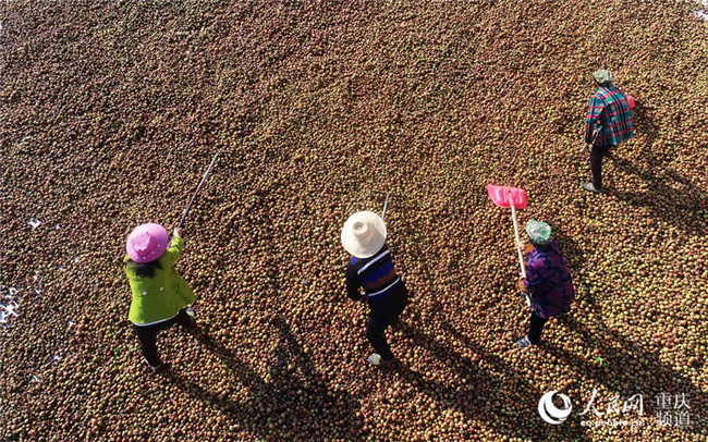 1月3日,在重慶市酉陽(yáng)土家族苗族自治縣五福鎮(zhèn)的五福盈茶油定制工廠,工人們正忙著晾曬油茶籽,整個(gè)廠區(qū)一片繁忙景象。近年來(lái),該縣采取“生態(tài)+產(chǎn)業(yè)”模式在荒山上開(kāi)發(fā)的上萬(wàn)畝油茶已陸續(xù)豐收,油茶產(chǎn)業(yè)成為當(dāng)?shù)剞r(nóng)民脫貧致富產(chǎn)業(yè)之一。