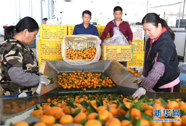 時下正是廣西鹿寨縣平山鎮(zhèn)數(shù)萬畝柑桔成熟上市的季節(jié)。據(jù)悉,2018年平山鎮(zhèn)柑桔產(chǎn)值3.29億元,隨著當?shù)馗探鄯N植面積不斷擴大,柑桔產(chǎn)業(yè)成為村民脫貧致富的重要產(chǎn)業(yè)。 新華社記者 周華 攝