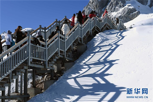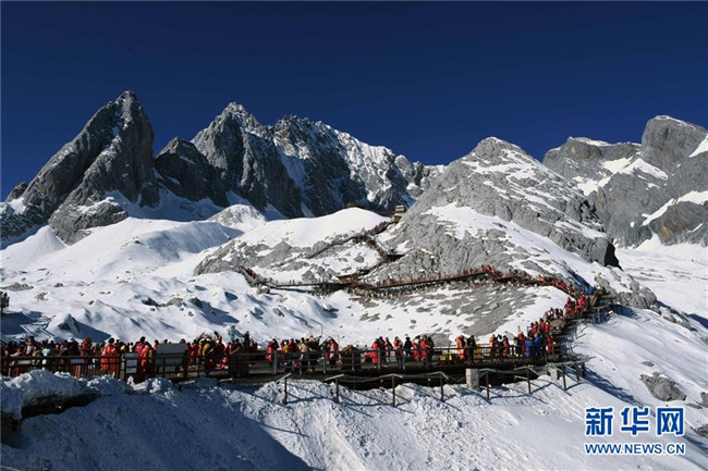 冬季,云南省麗江玉龍雪山景色秀美壯觀,吸引了眾多游客。