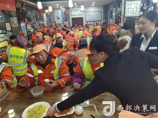 西部決策網(wǎng)訊  (記者李乃斌) 2020年1月2日(農(nóng)歷己亥年臘月初八)是中國傳統(tǒng)節(jié)日——臘八節(jié)。在這個(gè)喜慶的節(jié)日里,永豐企業(yè)發(fā)起了“情系環(huán)衛(wèi)工,寒冬送溫暖”活動(dòng),永豐岐山面讓1000余名西安環(huán)衛(wèi)工人,喝上了免費(fèi)的臘八粥、吃上了岐山臊子面。讓城市中最可愛的人感受到了寒冬中的溫暖。