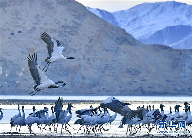 冬季,大批黑頸鶴來到西藏拉薩市達(dá)孜區(qū)和林周縣棲息、覓食。天地間鶴舞翩翩,賞心悅目。