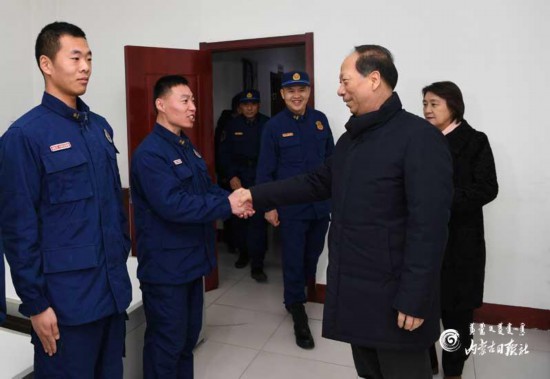 在賽罕區(qū)消防救援大隊(duì)二中隊(duì),石泰峰、布小林來(lái)到消防救援裝備間、消防員宿舍,認(rèn)真檢查消防救援裝備,與執(zhí)勤隊(duì)員親切握手交流,了解春節(jié)期間執(zhí)勤備勤情況。他說(shuō),春節(jié)期間人流物流密集,居民用火、用電多,是火災(zāi)易發(fā)多發(fā)期,一定要倍加注意消防安全,格外加強(qiáng)應(yīng)急值守,枕戈待旦、快速反應(yīng),全力做好消防安全保衛(wèi)各項(xiàng)工作,確保春節(jié)期間萬(wàn)無(wú)一失,當(dāng)好“人民群眾安全守護(hù)神”。