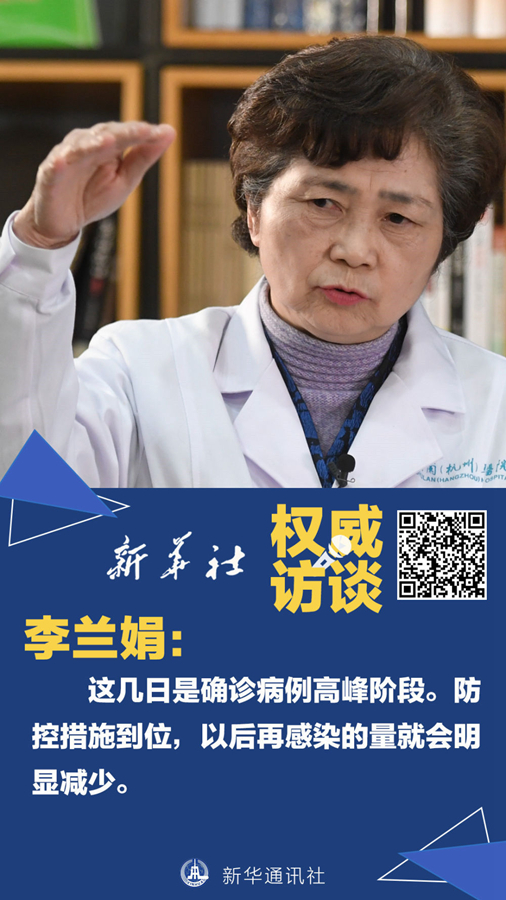 李蘭娟:之前為潛伏期的病人開始發(fā)病。早期武漢流到全國各地的病人以及留在武漢的病人都到了發(fā)病期,這是高峰來臨的一個階段,一點也不奇怪?,F(xiàn)在,發(fā)病的人我們隔離了,與他們有密切接觸的人員也調查出來、隔離起來,以后再感染的數(shù)量會明顯減少。武漢“封城”是非常英明的決策。正好趕上春節(jié)人口大流動,只有嚴格地把武漢控制起來,其他的地方才會減少發(fā)病率。
