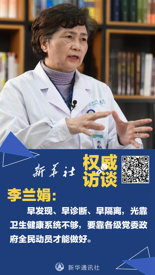 新型冠狀病毒感染的肺炎疫情每一天、每一點變化都牽動人心。1月29日,“新華視點”記者專訪了中國工程院院士、國家衛(wèi)生健康委高級別專家組成員李蘭娟。她說,對傳染病思想上永遠不能松懈。依靠各級黨委政府全民總動員,依靠廣大專業(yè)的醫(yī)務人員,我們一定能勝利。