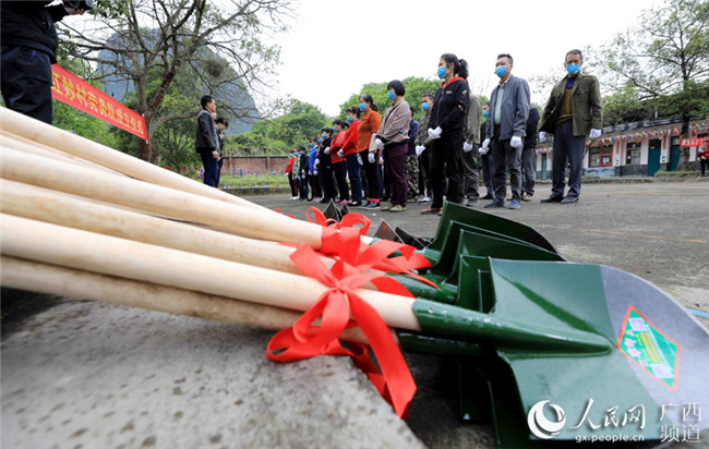 廣西柳州市融安縣沙子鄉(xiāng)紅妙村拍攝的勞務(wù)隊(duì)成立。譚凱興攝