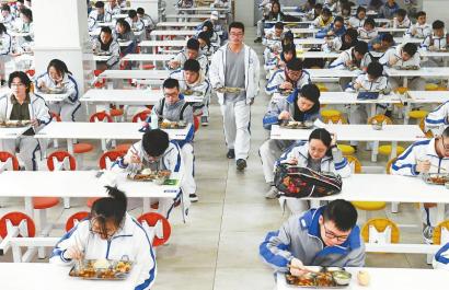 成都高新區(qū)電子科技大學(xué)實(shí)驗(yàn)中學(xué)學(xué)生錯(cuò)時(shí)錯(cuò)峰就餐。