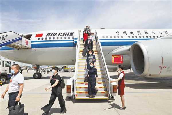 五月二十日,出席十三屆全國人大三次會議的重慶代表團抵達北京。記者 巨建兵 攝