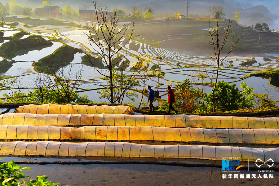 奉節(jié)縣興隆鎮(zhèn)廟灣鄉(xiāng)村的村民正忙著移栽烤煙幼苗。新華網(wǎng)發(fā)(何川 攝)