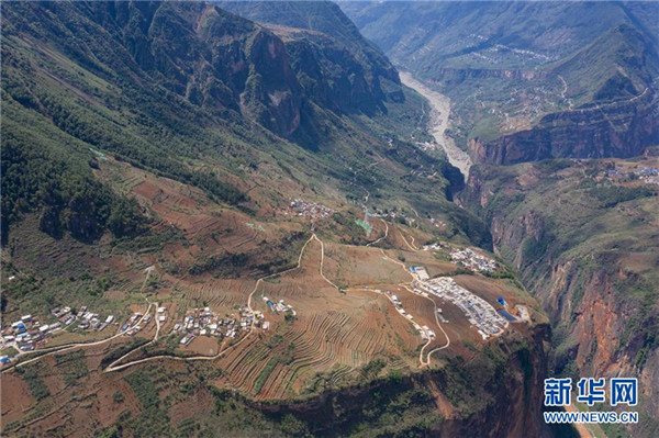 金陽縣蘆稿鎮(zhèn)大灣子村,通村公路蜿蜒盤旋在金沙江峽谷懸崖絕壁邊(6月7日攝,無人機照片)。坐落在金沙江畔的四川省金陽縣是國家級深度貧困縣,境內(nèi)群山連綿起伏,海拔落差大,眾多村寨處于高山或者高半山上,道路施工難度大。近年來,當?shù)卣畬⒔煌ㄗ鳛槊撠毠缘南葘怨こ?,路越修越寬、越修越好,成為當?shù)厝罕姷拿撠氈赂宦?。截?019年底,金陽縣實現(xiàn)所有鄉(xiāng)鎮(zhèn)通油路、建制村通硬化路,鄉(xiāng)道里程達329.9公里,村道里程達866.8公里。新華社記者江宏景攝