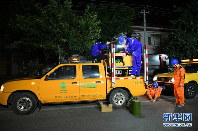 7月9日凌晨,在廣漢市南豐鎮(zhèn)元盛村,電力部門(mén)在調(diào)試設(shè)備提供應(yīng)急照明。 7月8日晚,四川省廣漢市南豐鎮(zhèn)元盛村一花炮廠發(fā)生火災(zāi)并引發(fā)的爆炸事故,已導(dǎo)致6人受傷,其中2人重傷,4人輕傷。事故原因正在調(diào)查中。 新華社記者 王曦 攝