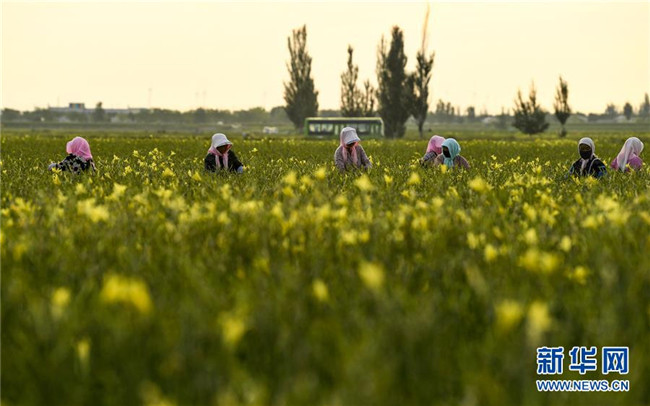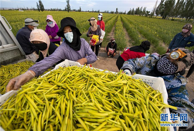 7月16日,在寧夏鹽池縣惠安堡鎮(zhèn)大壩村,農(nóng)民在日出前采摘黃花菜。新華社記者 馮開華 攝