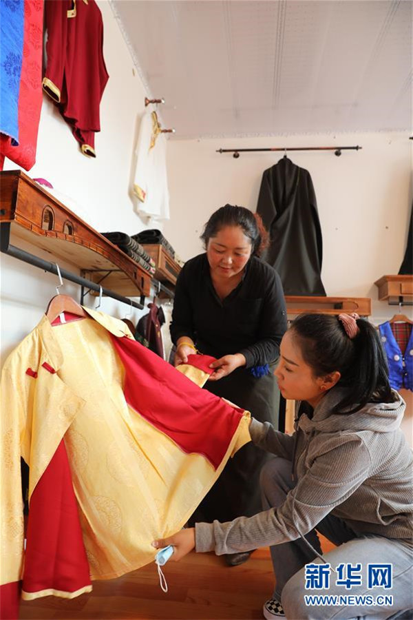 7月23日,在甘肅省甘南藏族自治州夏河縣??奇?zhèn)崗岔村的扶貧車間內(nèi),卓瑪吉(右)和扶貧車間負(fù)責(zé)人研究成衣款式。崗岔村是甘肅省甘南藏族自治州夏河縣桑科鎮(zhèn)的一個(gè)牧業(yè)村,平均海拔3000米以上。2018年,在夏河縣文明辦工作的卓瑪吉開始擔(dān)任駐村幫扶工作隊(duì)隊(duì)長,每年都有200多天待在草原上。兩年來,卓瑪吉帶領(lǐng)大家開辦扶貧車間,發(fā)展特色產(chǎn)業(yè),聯(lián)系勞務(wù)輸出。為了讓村民更全面地了解精準(zhǔn)扶貧政策,卓瑪吉登門宣講政策。為了提高村容村貌,卓瑪吉發(fā)動(dòng)大家開展廁所革命和庭院環(huán)境評(píng)比,積極響應(yīng)甘南藏族自治州“全域無垃圾”創(chuàng)建行動(dòng)。她還從縣城請(qǐng)來醫(yī)生,為村民舉辦健康講座,在全村婦女中開展“兩癌篩查”。如今,崗岔村變成了干凈、整齊、富裕、美麗的生態(tài)文明村,提前實(shí)現(xiàn)了整村脫貧。談起心愿,卓瑪吉說:“要讓草原和草原上的人都變得更美。”新華社發(fā)(杜哲宇攝)