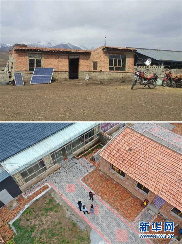 拼版照片:上圖為崗岔村村民才讓扎西在易地扶貧搬遷之前居住的房子(資料照片)。下圖為才讓扎西易地扶貧搬遷后的新家(7月23日攝,無人機(jī)照片)。新華社發(fā)(杜哲宇攝)崗岔村是甘肅省甘南藏族自治州夏河縣??奇?zhèn)的一個(gè)牧業(yè)村,平均海拔3000米以上。2018年,在夏河縣文明辦工作的卓瑪吉開始擔(dān)任駐村幫扶工作隊(duì)隊(duì)長,每年都有200多天待在草原上。兩年來,卓瑪吉帶領(lǐng)大家開辦扶貧車間,發(fā)展特色產(chǎn)業(yè),聯(lián)系勞務(wù)輸出。為了讓村民更全面地了解精準(zhǔn)扶貧政策,卓瑪吉登門宣講政策。為了提高村容村貌,卓瑪吉發(fā)動(dòng)大家開展廁所革命和庭院環(huán)境評(píng)比,積極響應(yīng)甘南藏族自治州“全域無垃圾”創(chuàng)建行動(dòng)。她還從縣城請(qǐng)來醫(yī)生,為村民舉辦健康講座,在全村婦女中開展“兩癌篩查”。如今,崗岔村變成了干凈、整齊、富裕、美麗的生態(tài)文明村,提前實(shí)現(xiàn)了整村脫貧。談起心愿,卓瑪吉說:“要讓草原和草原上的人都變得更美。”新華社發(fā)