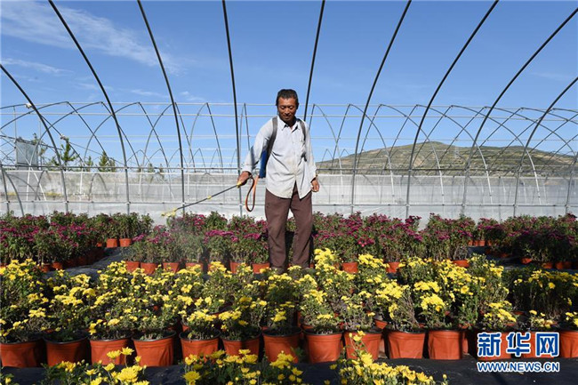 大棚蔬菜、花卉育苗、制種繁育、牛羊養(yǎng)殖……18個現(xiàn)代化農業(yè)基地如雨后春筍般出現(xiàn)。整個魯家溝成了扶貧產業(yè)園,15分鐘務工圈初具雛形,昔日靠天吃飯的莊稼漢變成了旱澇保收的“上班族”。每天,陳瑞福徜徉在花叢中除草、澆水、施肥。他說,這比種地“下苦”美多了。