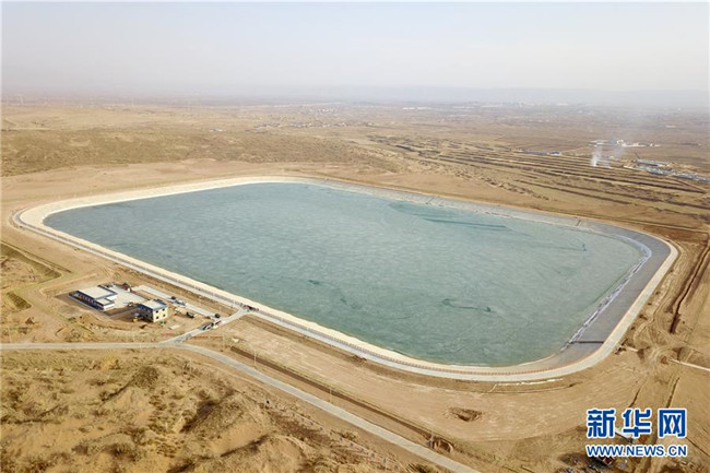 這是古浪縣黃花灘生態(tài)移民區(qū)1號調蓄水池(3月5日攝,無人機照片)。 新華社記者 范培珅 攝