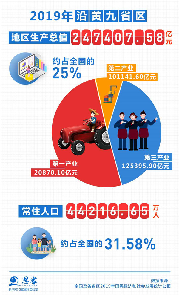 “平衡南北方,協(xié)同東中西”,黃河流域在我國經(jīng)濟社會發(fā)展中地位十分重要。流經(jīng)青海、四川、甘肅、寧夏、內(nèi)蒙古、陜西、山西、河南、山東9個省區(qū)的黃河,流域內(nèi)省份2019年底總?cè)丝?.42億,占全國的31.58%;地區(qū)生產(chǎn)總值24.74萬億元,約占全國25%。