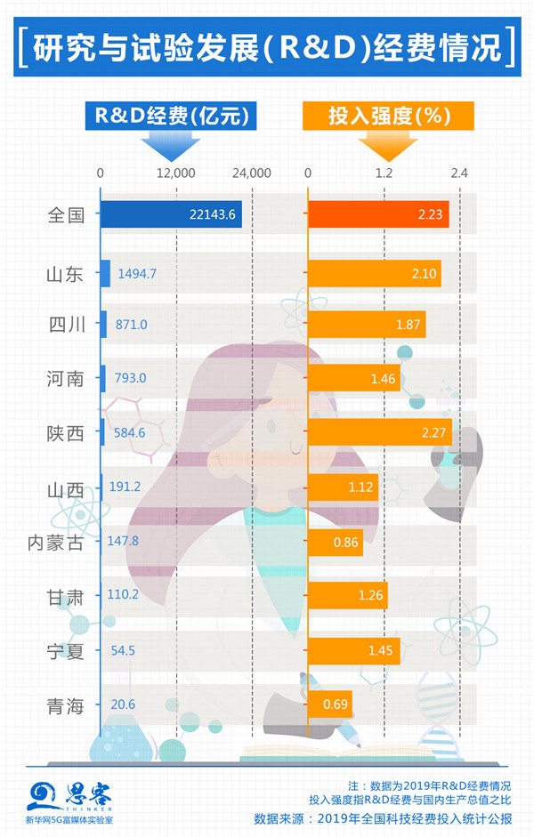 同東部沿海地區(qū)、南方省份相比,黃河流域創(chuàng)新競爭壓力巨大,創(chuàng)新要素“孔雀東南飛”的趨勢嚴(yán)峻。2019年,九省區(qū)內(nèi)只有陜西的R&D經(jīng)費投入強度高于全國平均水平。高端人才、技術(shù)勞動力、產(chǎn)業(yè)資本等關(guān)鍵要素外流態(tài)勢仍在持續(xù),因此黃河流域在新舊動能轉(zhuǎn)換上面臨困境。