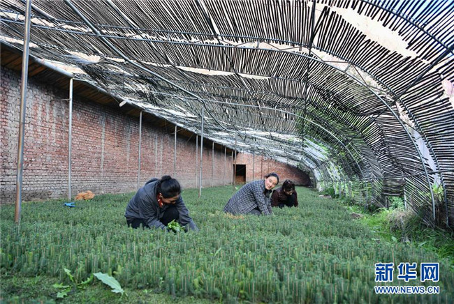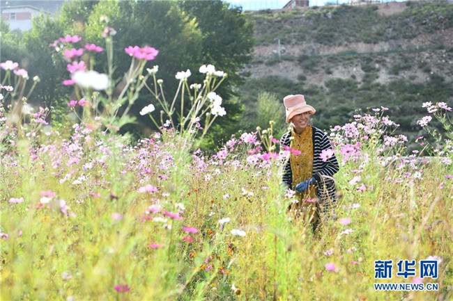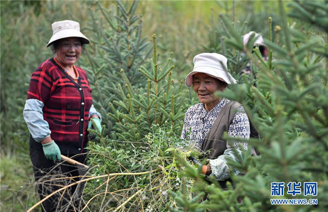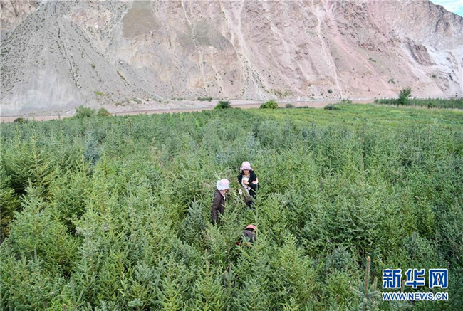 西藏昌都察雅縣卡貢鄉(xiāng)卡貢村村民在苗圃產業(yè)基地進行除草作業(yè)(9月28日攝)。新華社記者 晉美多吉 攝