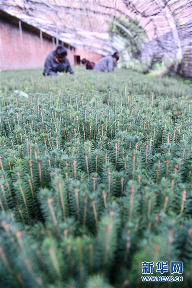 西藏昌都察雅縣卡貢鄉(xiāng)卡貢村村民在云杉育苗間里勞作(9月28日攝)。新華社記者 晉美多吉 攝