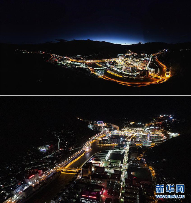 昌都市夜景(10月7日攝,無(wú)人機(jī)照片)。 新華社記者 晉美多吉 攝