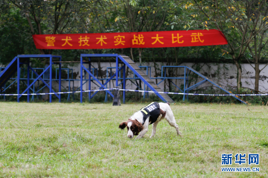 重慶市刑偵支(大)隊警犬部門開展實戰(zhàn)比武練兵。圖為草坪搜尋項目比賽中,警犬正在搜尋。新華網(wǎng)發(fā)(耿駿宇 攝)