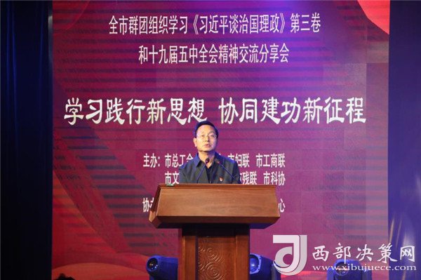 西部決策網(wǎng)訊 為深入貫徹習(xí)近平新時(shí)代中國(guó)特色社會(huì)主義思想,學(xué)習(xí)宣傳貫徹《習(xí)近平談治國(guó)理政》第三卷、黨的十九屆五中全會(huì)精神,加快群團(tuán)協(xié)同化建設(shè)進(jìn)程,11月5日,西寧市總工會(huì)牽頭召開(kāi)市級(jí)群團(tuán)組織“學(xué)習(xí)踐行新思想 協(xié)同建功新征程”為主題的學(xué)習(xí)《習(xí)近平談治國(guó)理政》第三卷和黨的十九屆五中全會(huì)精神交流分享會(huì),市委常委、宣傳部部長(zhǎng)、市總工會(huì)主席王霞出席會(huì)議并講話。全市各群團(tuán)組織負(fù)責(zé)同志、勞模代表和干部職工群眾共300余人參加活動(dòng)。