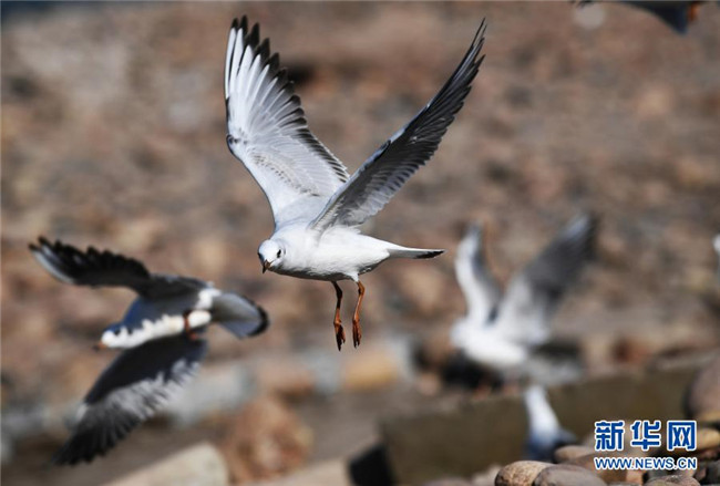 這是11月11日在重慶市江津區(qū)幾江長江大橋一帶拍攝的紅嘴鷗。新華社記者 王全超 攝