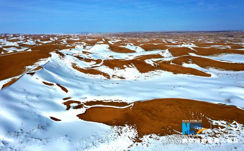 原標(biāo)題:【“飛閱”中國】甘肅民勤:大漠雪霽美如畫