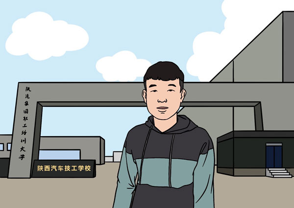 2017年7月,寶雞一建檔立卡貧困戶子女張釗,家中5口人,張釗一家因缺少勞動力,因病致貧,在人生的重要路口,陜汽技校向他伸出了橄欖枝,9月開學,他成為一名電器維修的學生。