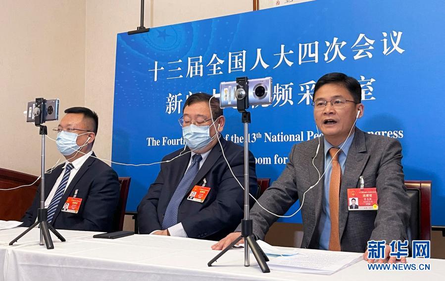 3月6日,全國人大代表在湖南代表團駐地接受視頻采訪。新華社記者 熊爭艷 攝
