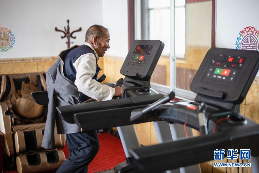 次旦在集中供養(yǎng)服務中心里鍛煉(3月19日攝)。