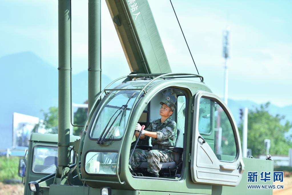 戰(zhàn)略支援部隊某大隊一級軍士長高玉華操作工程機(jī)械(7月23日攝)。 新華社記者 陳澤國 攝
