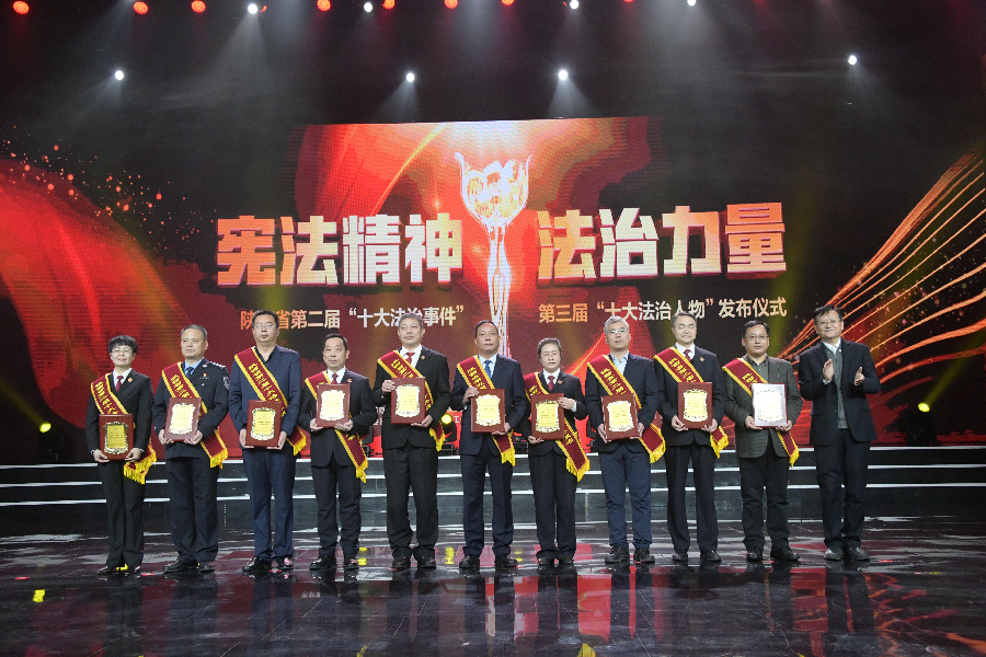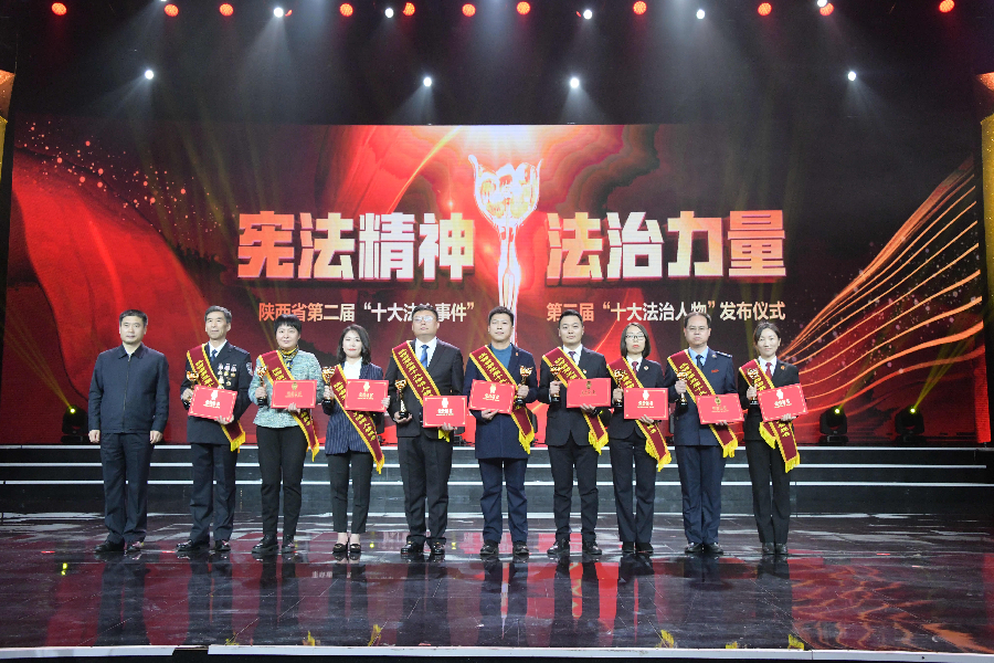 發(fā)布儀式現(xiàn)場(chǎng)播放了“十大法治事件”“十大法治人物”及提名獎(jiǎng)的先進(jìn)事跡短片,揭曉了陜西省第二屆“十大法治事件”、第三屆“十大法治人物”及提名獎(jiǎng)獲得者。“全國(guó)首創(chuàng)黨委(黨組)書(shū)記點(diǎn)評(píng)法治工作機(jī)制切實(shí)夯實(shí)‘一把手’履行法治建設(shè)責(zé)任”等10個(gè)事件被評(píng)為第二屆“十大法治事件”、“陜西出臺(tái)自由貿(mào)易試驗(yàn)區(qū)條例助推自貿(mào)區(qū)高質(zhì)量發(fā)展”等10個(gè)事件被評(píng)為第二屆“十大法治事件”提名獎(jiǎng),西安交通大學(xué)法學(xué)院二級(jí)教授馬治國(guó)等10名同志被評(píng)為第三屆“十大法治人物”、咸陽(yáng)市中級(jí)人民法院速裁中心主任李春麗等10名同志被評(píng)為第三屆“十大法治人物”提名獎(jiǎng)。