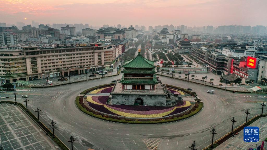 12月27日拍攝的西安市鐘鼓樓廣場(無人機照片)。新華社記者 陶明 攝