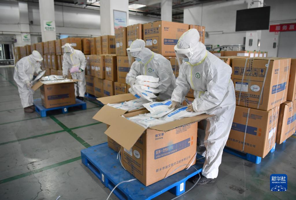 12月28日,陜藥集團(tuán)派昂醫(yī)藥公司工作人員在查看倉庫內(nèi)的疫情防控防護(hù)物資儲(chǔ)備情況。新華社記者 邵瑞 攝