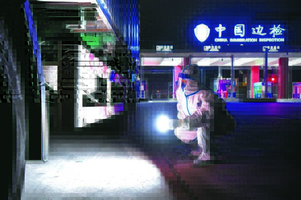 27日,記者在東興高速路口楠木山邊境檢查站看到,廣西防城港邊境管理支隊的執(zhí)勤民警身穿防護服,有條不紊地對車輛人員進行檢查,引導(dǎo)運送抗疫物資和人員的車輛有序進入檢查站。