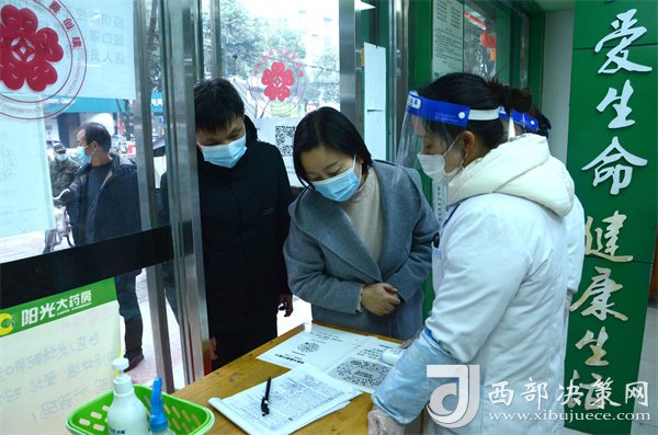 胡敏深入縣城艾斯大酒店、華盛超市、陽光大藥房等多家經(jīng)營單位,實地督查超市掃碼測溫、佩戴口罩、設置一米線等疫情防控措施落實情況,了解市場物資供應、穩(wěn)定物價等情況;檢查酒店測溫登記、人員入住、消毒殺菌、供餐等情況;了解醫(yī)療防護用品價格和儲備、“四類藥品”管控等情況。
