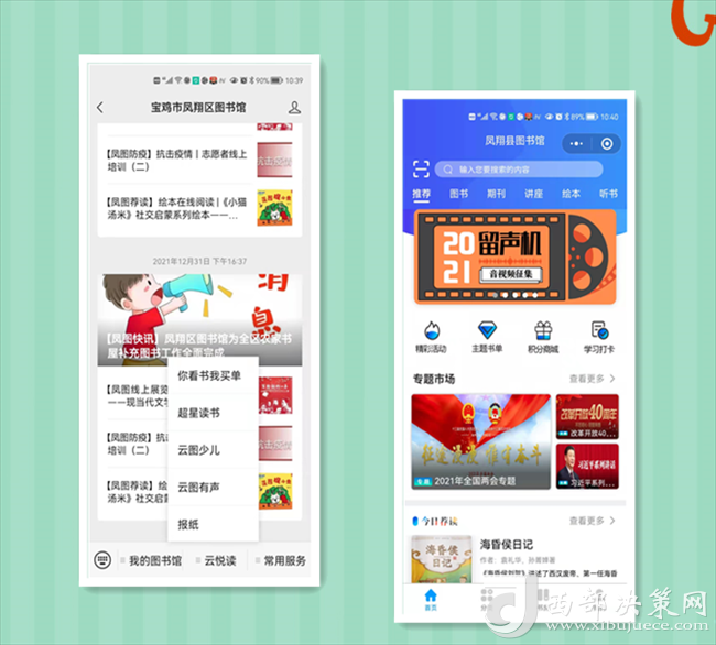 閉館不閉網(wǎng),線上服務(wù)不打烊。自12月23日閉館以來(lái),區(qū)圖書(shū)館整合各類(lèi)數(shù)字資源,免費(fèi)提供豐富的線上服務(wù),滿足不同年齡群體讀者的閱讀需求,更新“超星閱讀”APP,電子書(shū)、數(shù)字期刊、講座、繪本、聽(tīng)書(shū)等海量資源為讀者提供高質(zhì)量的閱讀福利。利用“陜西數(shù)字文化網(wǎng)”“鳳翔區(qū)圖書(shū)館官方網(wǎng)站”“鳳翔區(qū)圖書(shū)館”公眾微信號(hào),線上開(kāi)設(shè)【鳳圖戰(zhàn)疫】【鳳圖薦讀】【紅色故事繪】【館員姐姐講故事】【館員有聲薦讀】【鳳圖文苑】等閱讀服務(wù)專(zhuān)欄,提供疫情防控知識(shí)、繪本閱讀、親子故事講讀、線上展覽等,讀者通過(guò)關(guān)注“寶雞市鳳翔區(qū)圖書(shū)館”公眾號(hào)、網(wǎng)站享受24小時(shí)線上服務(wù),通過(guò)鳳翔區(qū)圖書(shū)館總分館群,將這些優(yōu)質(zhì)數(shù)字資源向基層分館輸送,讓廣大讀者暢享“云端閱讀”。