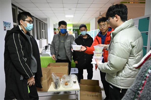為了讓同學(xué)們在外求學(xué)的第一個冬至過的有意義,羅慶輝與班委們精心策劃,用班費(fèi)提前在餐廳預(yù)定了106份水餃,他們做好分工、分組分批送達(dá)同學(xué)們手中。“由于疫情原因,我們班級原本計劃的冬至集體包餃子活動不得不取消了,我想盡可能的彌補(bǔ)這個遺憾,讓同學(xué)們在冬至仍然能吃得上餃子,而且吃上屬于我們班級的餃子。”羅慶輝說道。