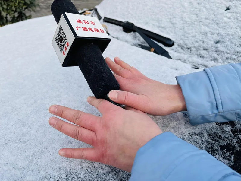 2021年12月26日,冒著風(fēng)雪嚴寒在戶外連續(xù)工作幾個小時,咸陽市廣播電視臺記者王倩的雙手凍得通紅。
