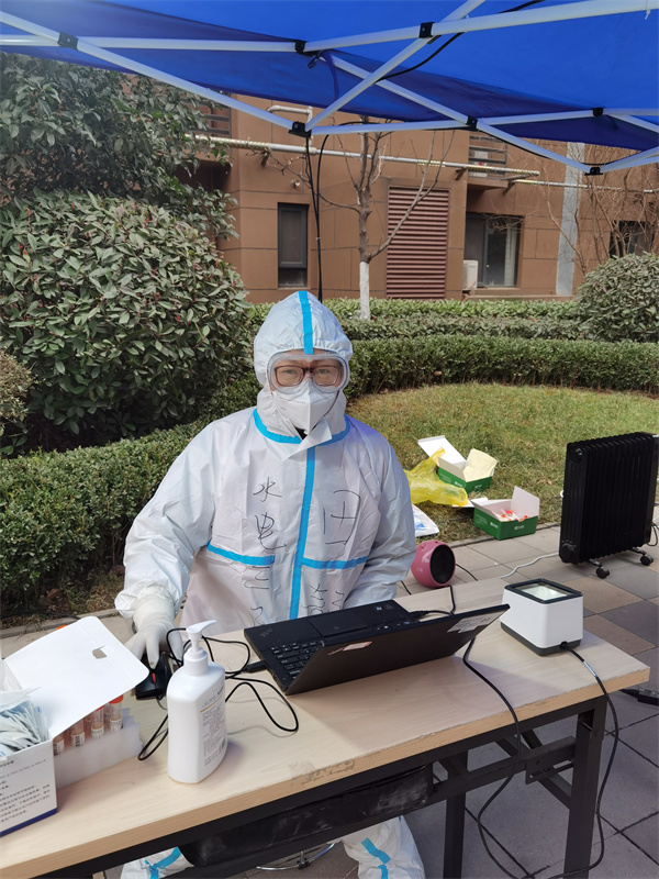 “街坊們,來(lái)來(lái)來(lái)!做核酸檢測(cè),請(qǐng)先到這邊來(lái)登記。”身處經(jīng)開(kāi)區(qū)的劉璇和向權(quán)在接到公司黨委號(hào)召后,積極申請(qǐng)參與白樺林社區(qū)的抗“疫”志愿服務(wù)。向權(quán)是一位湖南籍的小伙,和劉璇都是單位的青年職工,作為青年情侶抗“疫”志愿者的他們,主動(dòng)為社區(qū)居民提供貼心服務(wù),認(rèn)真做好維護(hù)現(xiàn)場(chǎng)秩序、協(xié)助登記信息、宣傳防疫知識(shí)、排查統(tǒng)計(jì)居民困難等工作,積極充當(dāng)著守門(mén)員、宣傳員、信息監(jiān)督員和跑腿員,用青春力量構(gòu)建起一條條保障防線。“疫”路難行,你我同在,兩人在服務(wù)過(guò)程中耐心的勸導(dǎo)、詳細(xì)的詢問(wèn)和解答都得到了小區(qū)居民的一致好評(píng)。“在一次排查獨(dú)居老人困難情況時(shí),碰到一位曾從事水利工程工作的87歲清華畢業(yè)老人,這位老人與我們分享了很多工作事跡。”向權(quán)分享這一幕經(jīng)歷時(shí)他覺(jué)得無(wú)比親切與感動(dòng)。