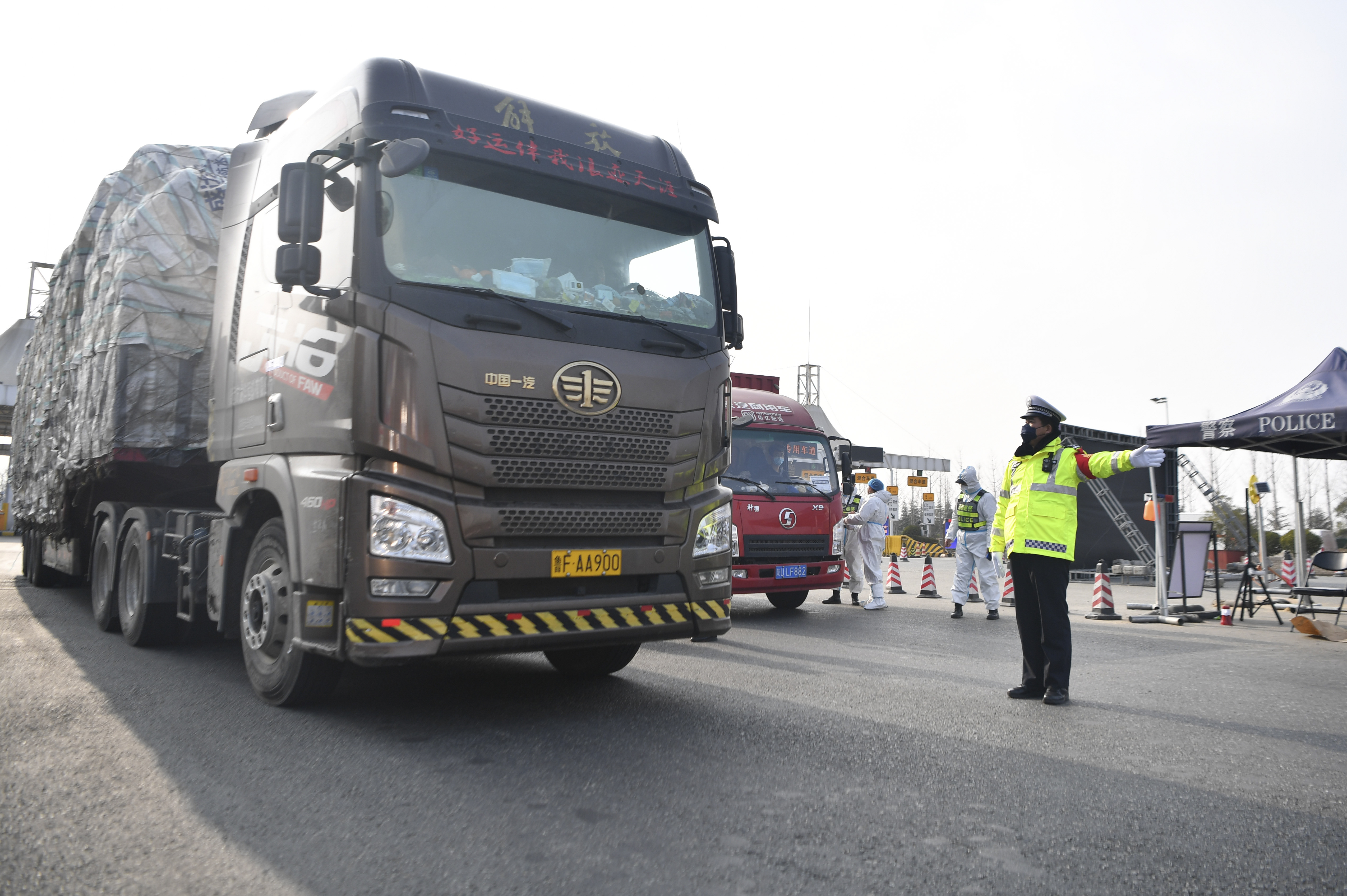 1月10日,西安市公安局交通警察支隊(duì)民警在西安市繞城高速河池寨收費(fèi)站指揮引導(dǎo)車(chē)輛通過(guò)。新華社記者 張博文 攝