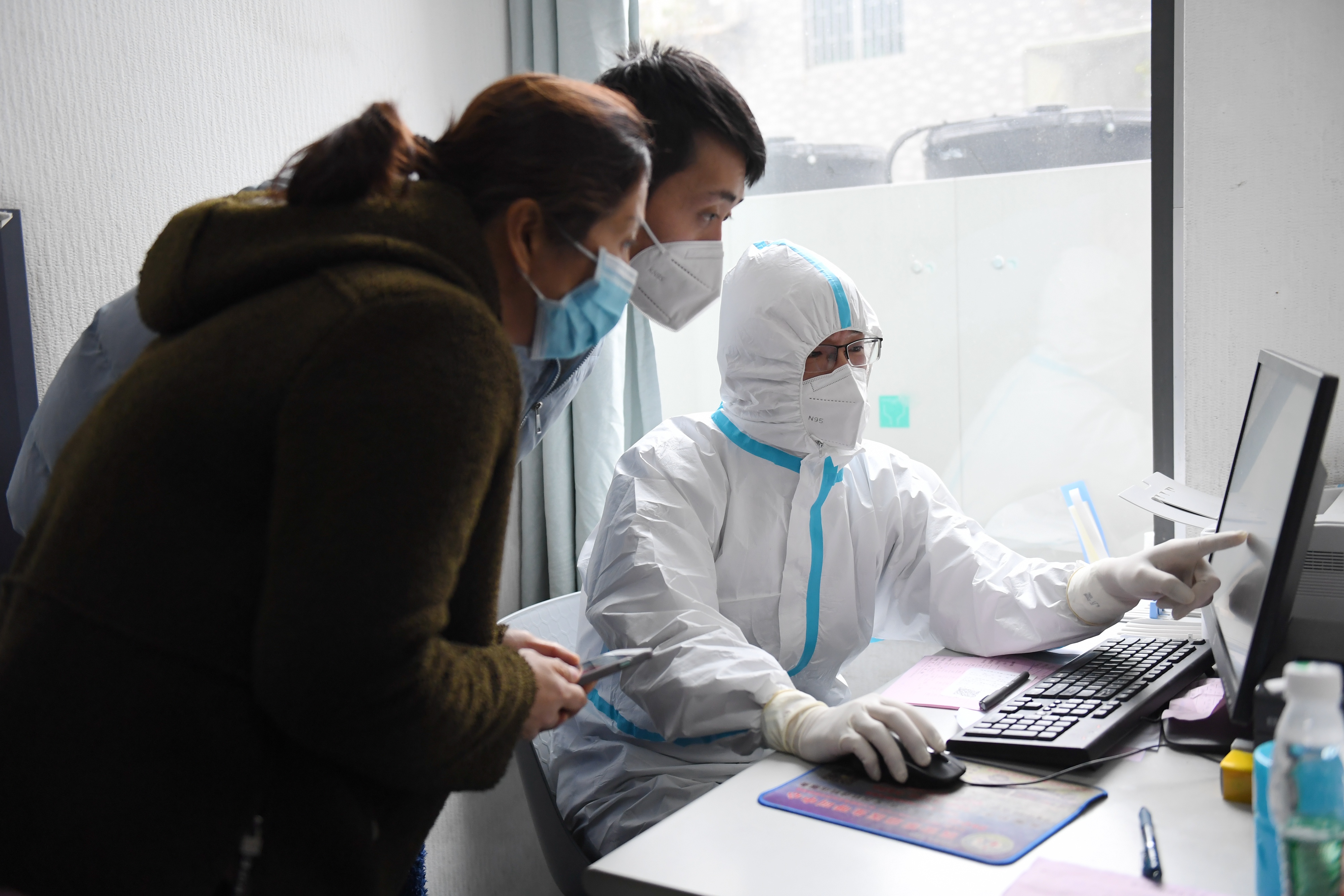 1月10日,在深圳火車站,抵深旅客進行核酸檢測。(新華社記者梁旭 攝)