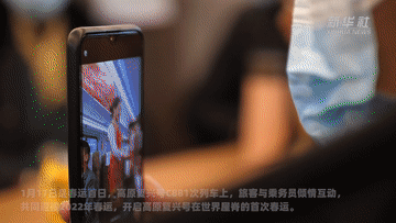 1月17日是春運首日,高原復(fù)興號C881次列車上,旅客與乘務(wù)員傾情互動,共同迎接2022年春運,開啟高原復(fù)興號在世界屋脊的首次春運。